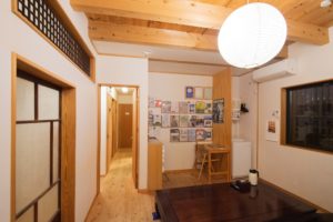 うどん店(年中無休)まで徒歩5分。繁華街までは徒歩15分。若葉屋は住宅街にあるので、夜はゆっくりお休みいただけます。