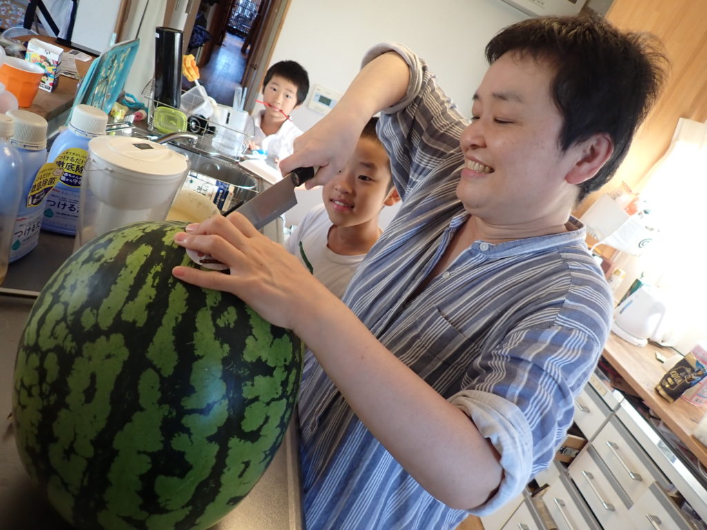 スイカの産地で生まれ育った妻の特技は、スイカをきれいに真っ二つに切ることです。